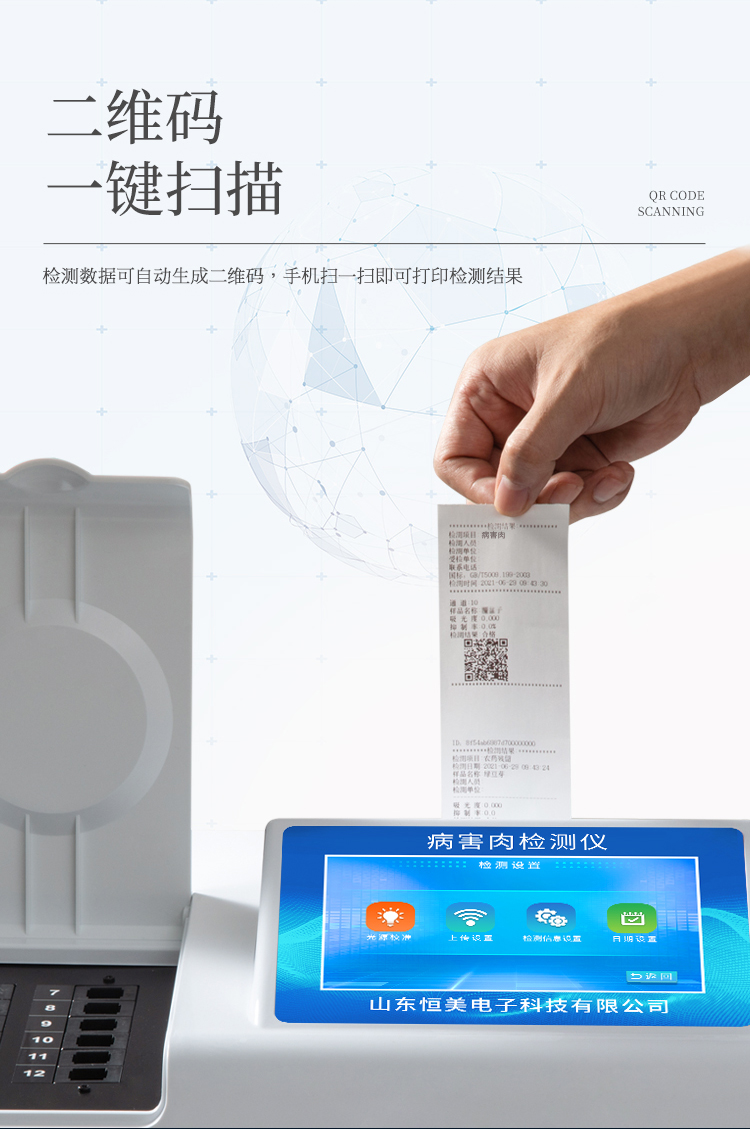 5、配備新一代嵌入式熱敏打印機(jī),可選擇手動(dòng)打印或者自動(dòng)打印,檢測(cè)完成可自動(dòng)打印檢測(cè)報(bào)告和二維碼。