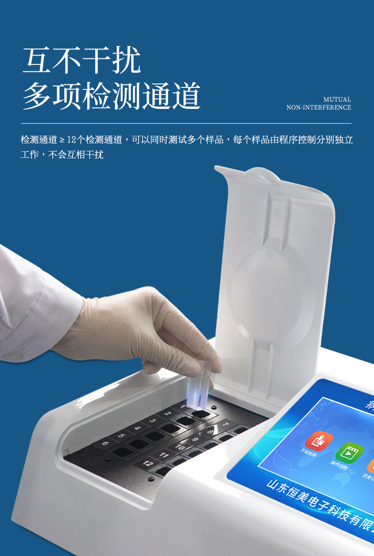 3、檢測(cè)通道:≥12個(gè)檢測(cè)通道,可以同時(shí)測(cè)試多個(gè)樣品,每個(gè)樣品由程序控制分別獨(dú)立工作,不會(huì)互相干擾。
