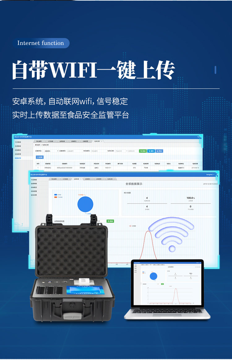 6、儀器具有wifi聯(lián)網(wǎng)功能,可將數(shù)據(jù)快速上傳電腦,進(jìn)行數(shù)據(jù)管理與統(tǒng)計(jì),4G信號(hào)GPRS遠(yuǎn)傳功能,可插手機(jī)卡實(shí)現(xiàn)數(shù)據(jù)遠(yuǎn)傳平臺(tái)。