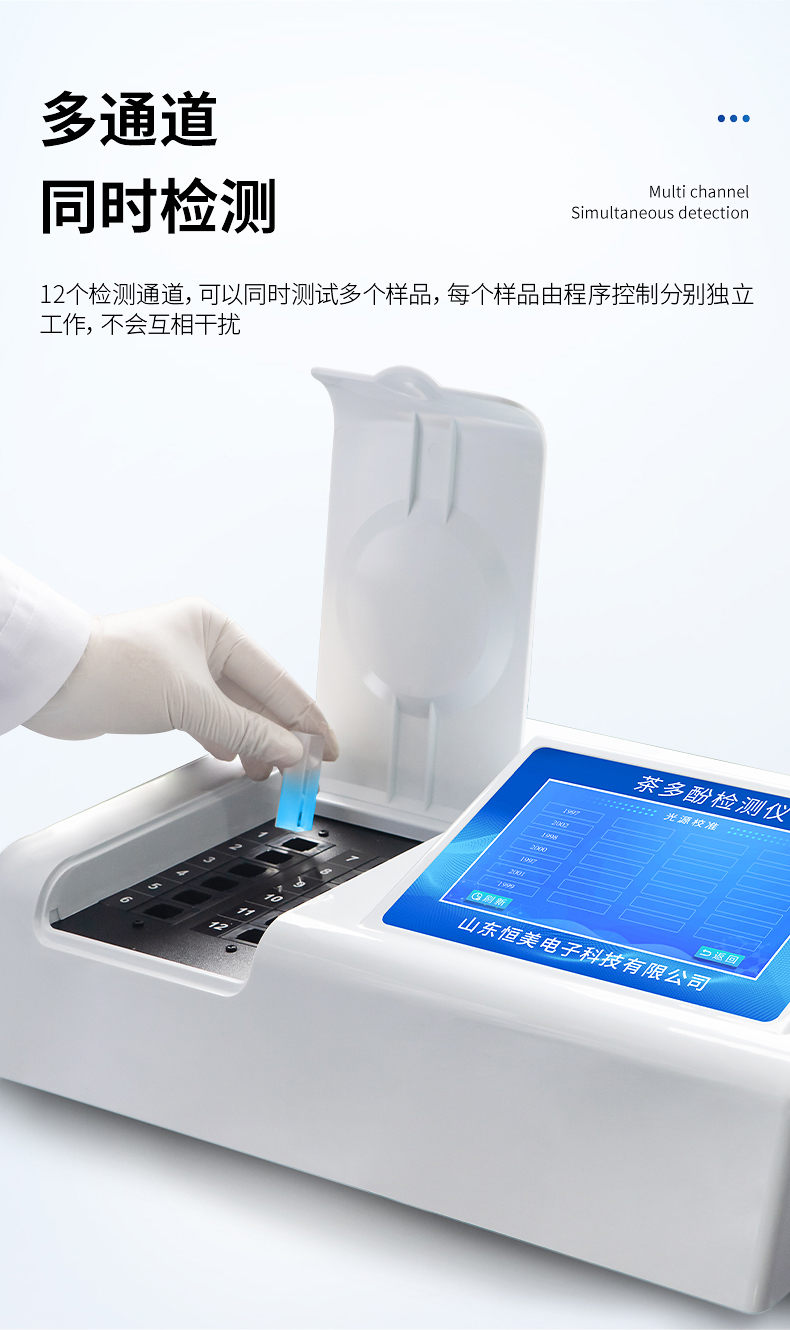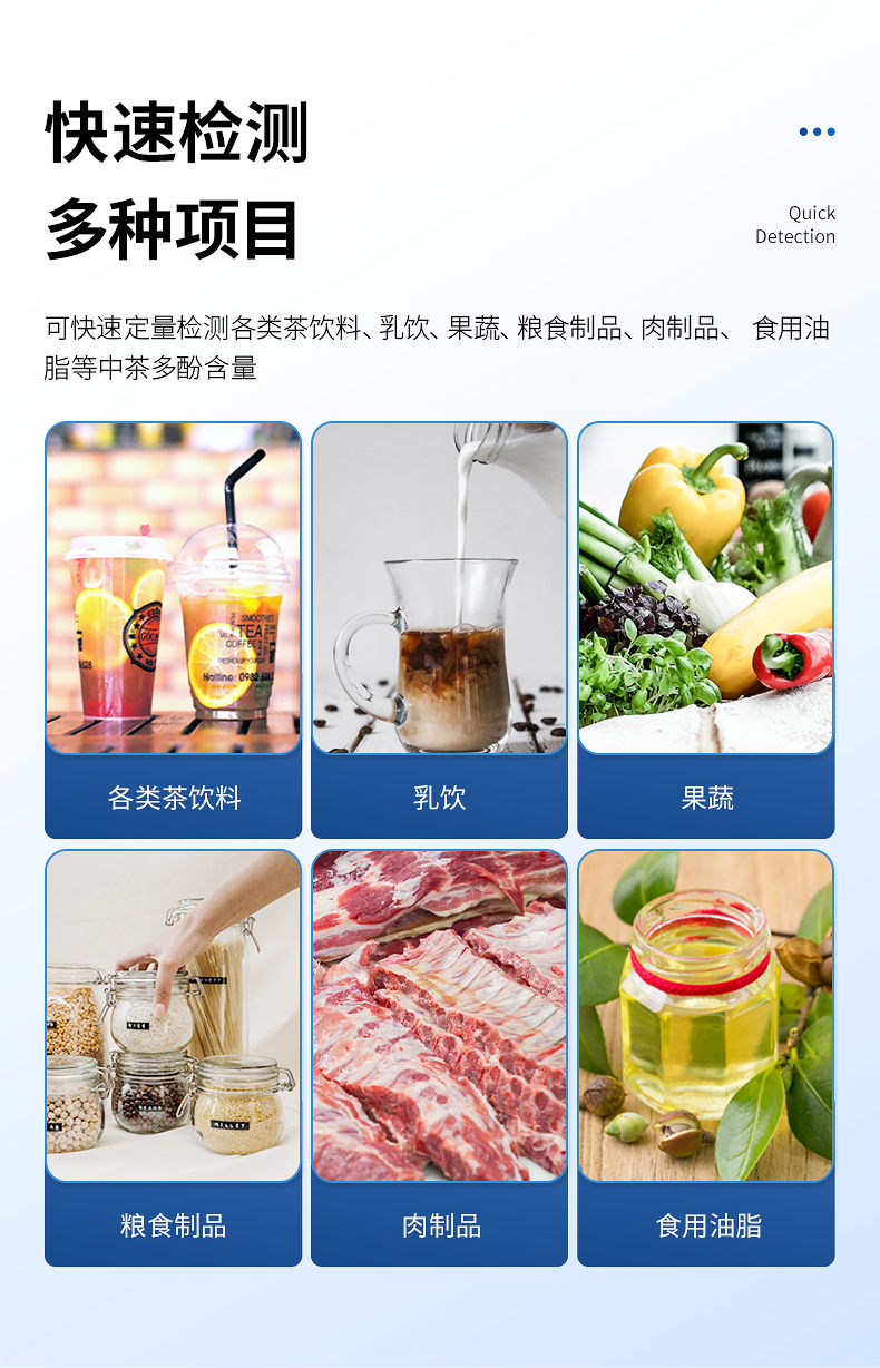 HM-F12茶多酚檢測(cè)儀可快速定量檢測(cè)各類茶飲料、乳飲、果蔬、糧食制品、肉制品、食用油脂等中茶多酚含量。茶多酚檢測(cè)儀可以廣泛應(yīng)用于產(chǎn)品質(zhì)量監(jiān)督檢驗(yàn)、工商管理、茶葉批發(fā)市場(chǎng)、茶葉0.深加工基地、飲料企業(yè)、超市、商場(chǎng)、各大食品安全監(jiān)測(cè)系統(tǒng)等部門(mén)。