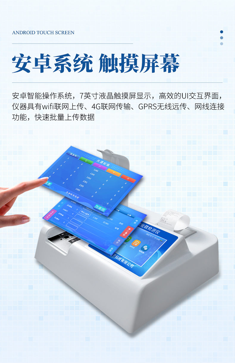 1、安卓智能操作系統(tǒng),采用更加高效和人性化操作,儀器具有網(wǎng)線連接、wifi聯(lián)網(wǎng)上傳、GPRS無線遠(yuǎn)傳功能,快速上傳數(shù)據(jù)。