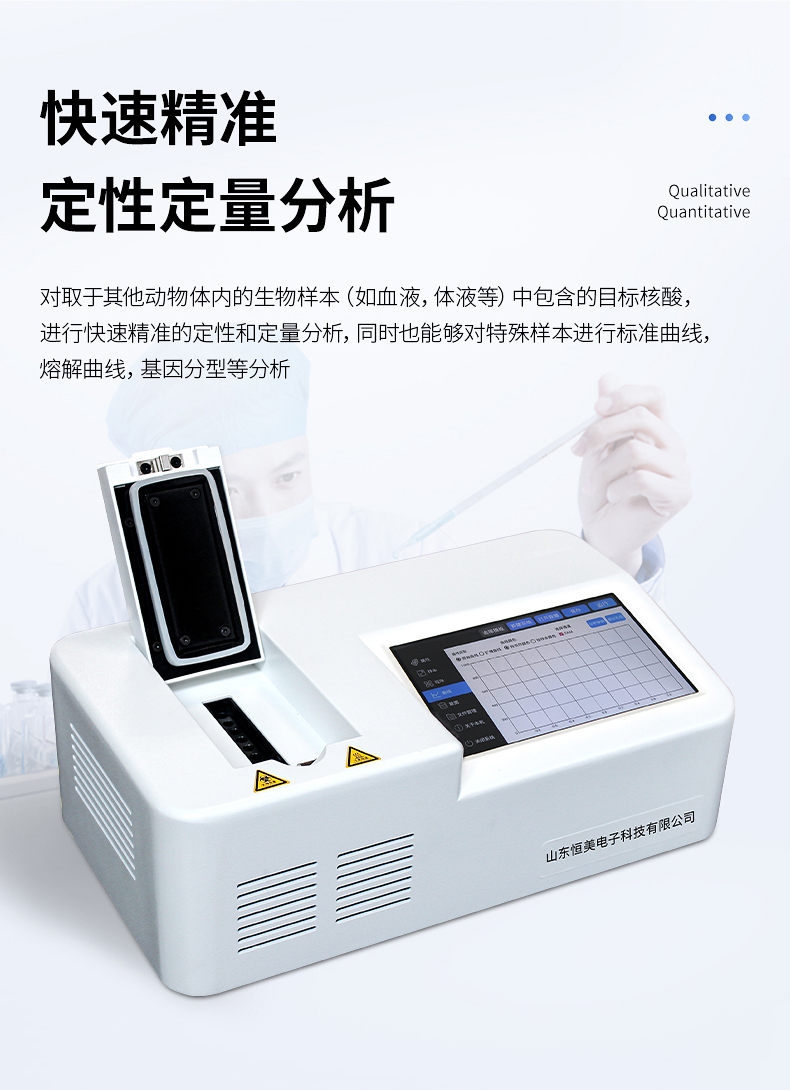 對取于其他動物體內(nèi)的生物樣本(如血液,體液等)中包含的目標核酸,進行快速精準的定性和定量分析,同時也能夠?qū)μ厥鈽颖具M行標準曲線,熔解曲線,基因分型等分析。