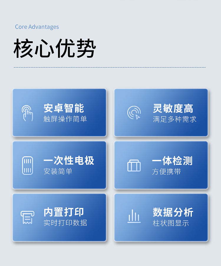 12、儀器使用絲網(wǎng)印刷電極,無(wú)需打磨維護(hù)等專業(yè)復(fù)雜前處理過(guò)程;