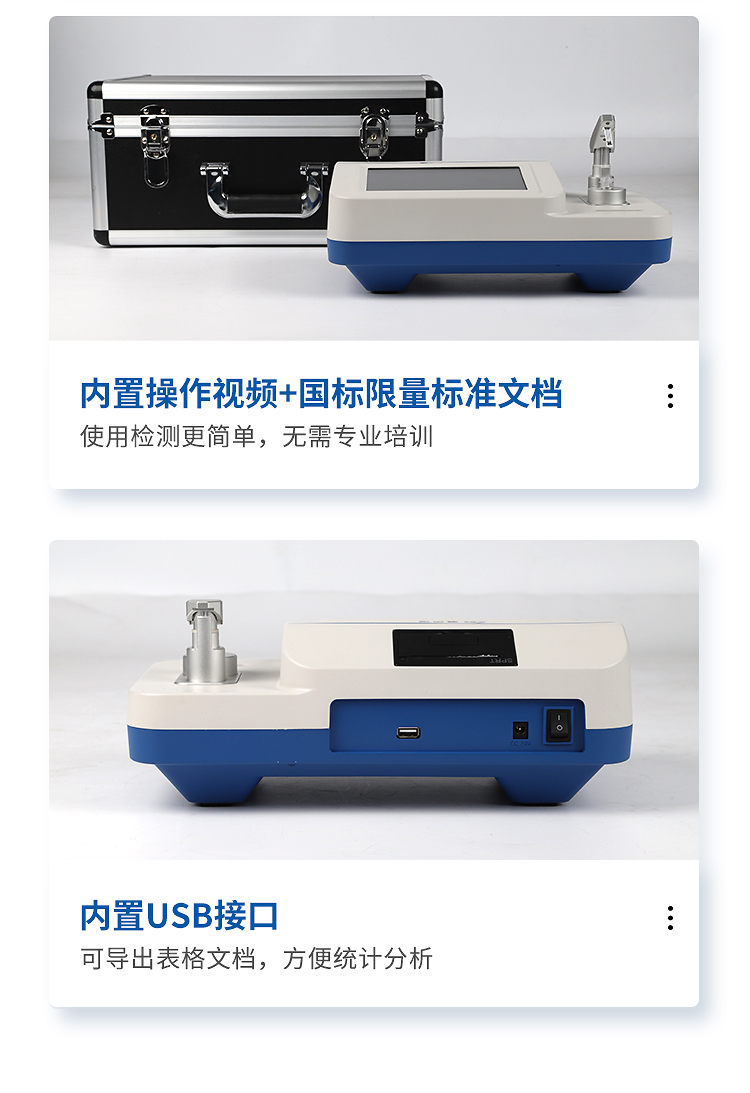 4、儀器內(nèi)置操作說(shuō)明書文檔和操作視頻,使用檢測(cè)更簡(jiǎn)單,無(wú)需專業(yè)培訓(xùn),適用于非專業(yè)人員現(xiàn)場(chǎng)檢測(cè);