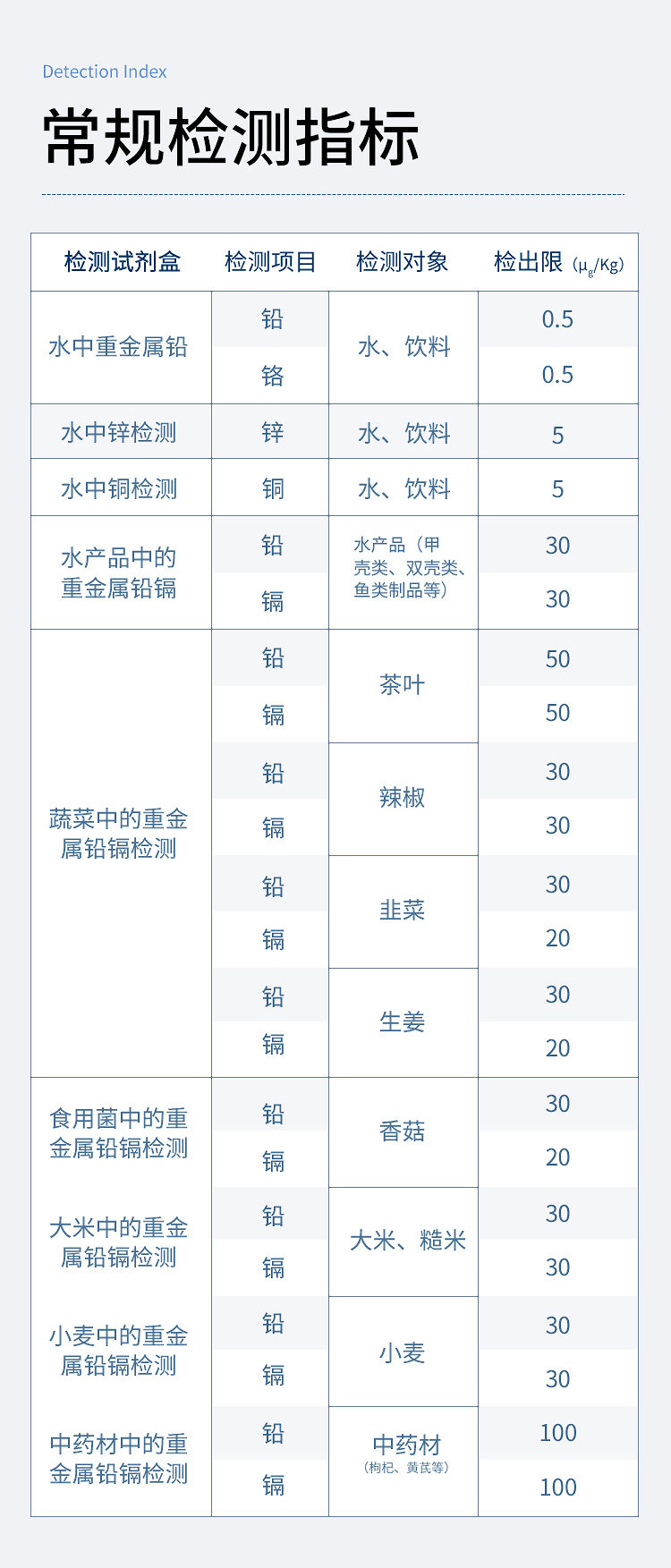 | 3 | 水中銅檢測(cè) | 銅 | 水、飲料 | 5 |
