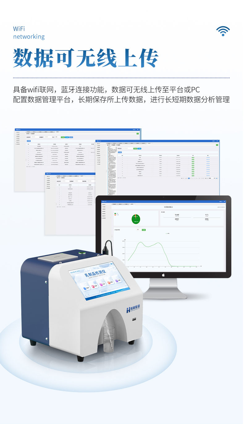 9、具備wifi聯(lián)網(wǎng),藍牙連接功能,數(shù)據(jù)可無線上傳至平臺或PC
