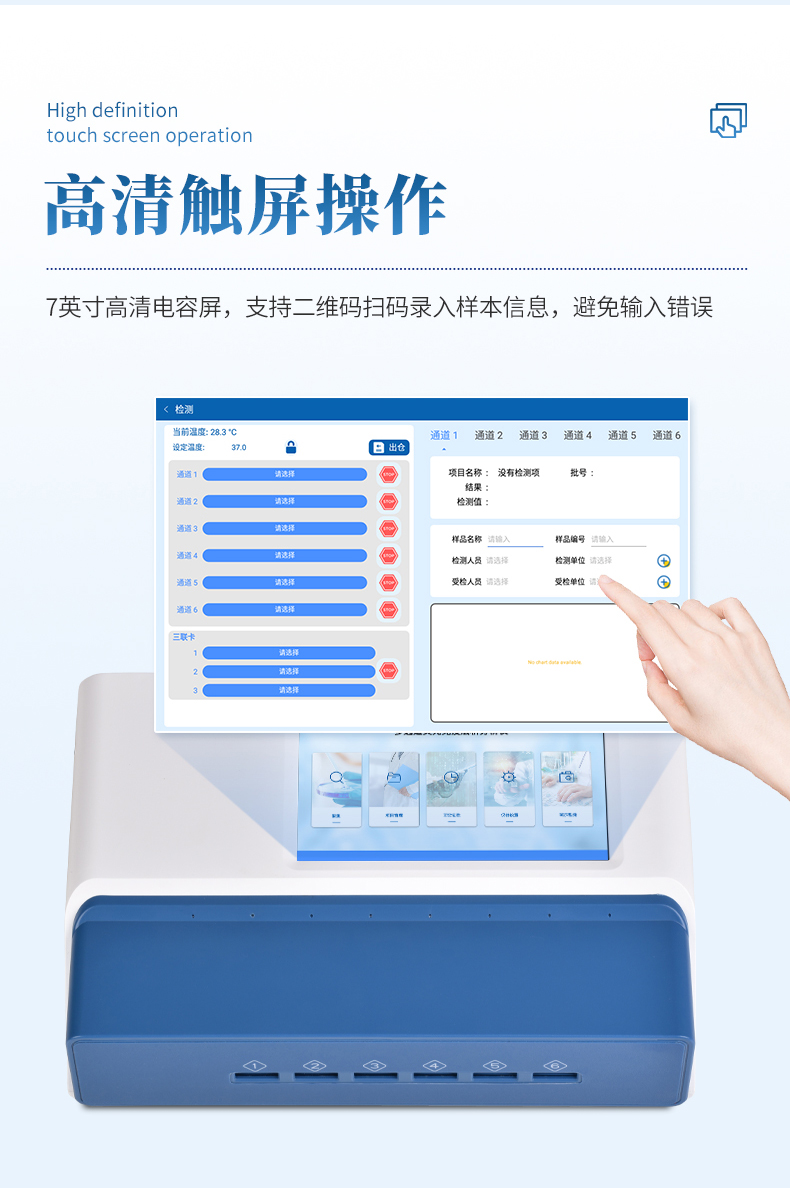11、檢測時間:< 5秒 (單卡及多聯(lián)卡);可對樣本進(jìn)行膠體金定性/半定量檢測。