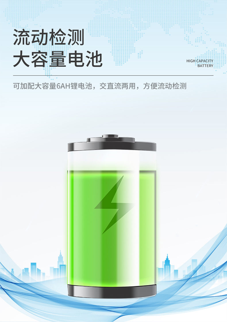 2、直流12V供電,可連接車(chē)載電源,可配6ah大容量充電鋰電池,方便戶(hù)外流動(dòng)測(cè)試。