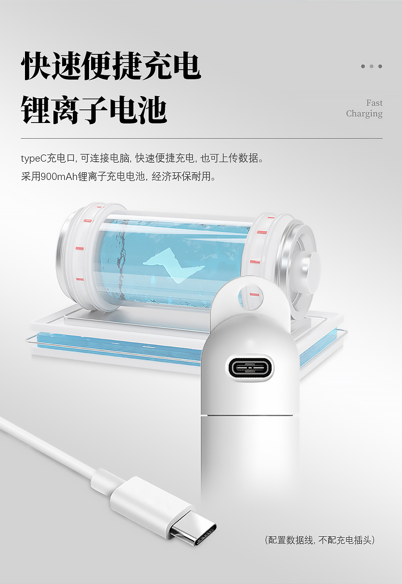 ■便攜性采用900mAh鋰離子充電電池,經(jīng)濟(jì)環(huán)保耐用,TYPE-C充電口快速便捷。