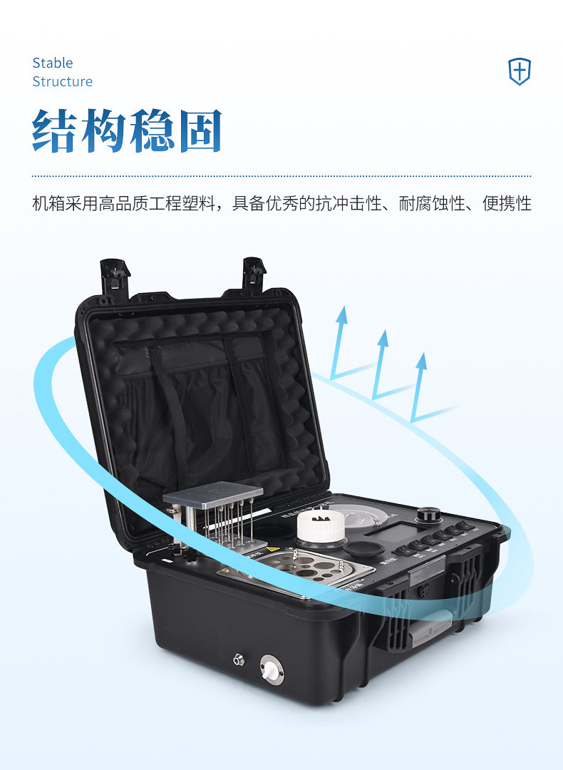 2、結(jié)構(gòu)穩(wěn)固,機(jī)箱采用高品質(zhì)工程塑料,具備**的抗沖擊性、耐腐蝕性、便攜性。