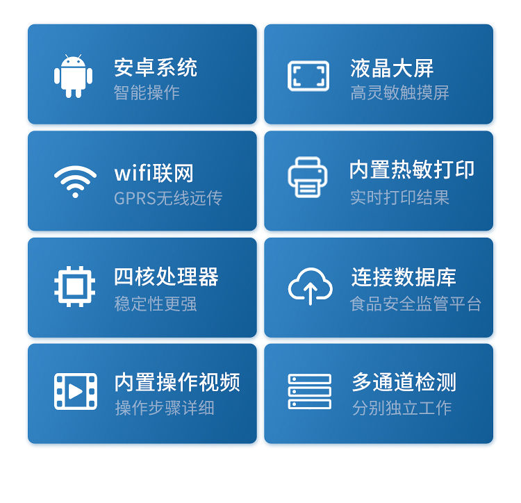 10、支持Wifi網絡,數據可局域網和互聯(lián)網數據上傳,檢測結果直接傳至食品安全監(jiān)管平臺。進行區(qū)域食品安全監(jiān)管及大數據分析處理,檢測區(qū)域食品安全長短期動態(tài),達到食品安全問題預估、預警